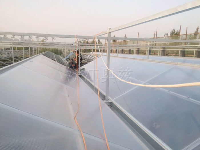 北方温室大棚面临冬季-20℃至-40℃低温、大雪、昼夜温差大及春季风沙等挑战,阳光板(PC板)凭借优异性能成为主流覆盖材料。其脆化温度低至-135℃,可耐受东北极端严寒;中空结构导热系数仅0.16-0.20 W/(m·K),保温效果比玻璃高40%以上,能减少冬季供暖能耗。抗雪载达30-50kg/㎡、抗10级大风,搭配5°-10°安装坡度可快速排雪。带防雾涂层的阳光板(如朗盛ANTIFOG DP1)在95%高湿度下无雾,透光率保持率5年≥85%,保障作物光合作用。相比玻璃,阳光板重量仅为其1/12,建造成本低30%-40%;比塑料薄膜寿命长3-5倍。虽表面硬度较低易划伤,但选耐磨涂层板或加装防风障可解决。选型优先8-12mm厚、UV涂层≥50μ的全新料产品,适配北方生产型温室需求。