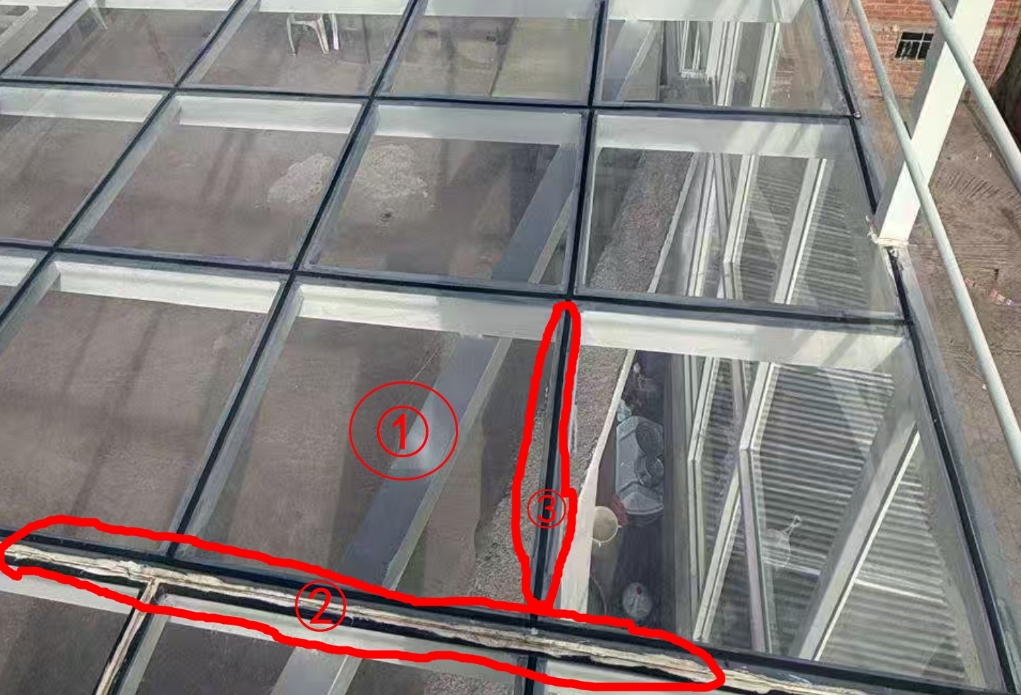 场景2:安装两年的雨棚开裂,伴随老化或发黄现象