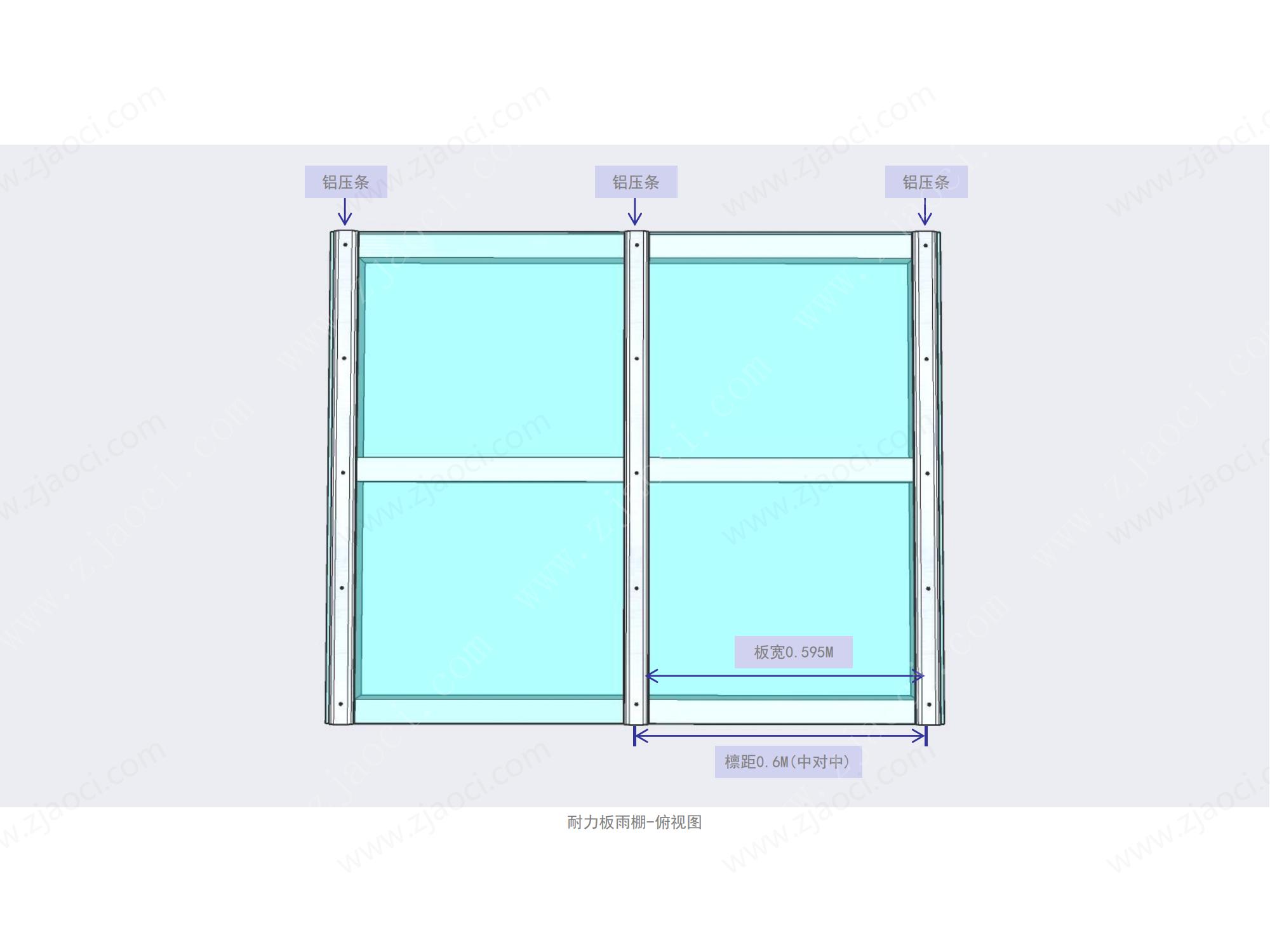 - 1. 弧形耐力板雨棚不建议在板面打螺丝固定。弯曲状态的耐力板会产生弹力,在内应力作用下,板材与螺丝孔接触位置极易发生崩裂。建议采用专用铝型材(如图:耐力板拼缝铝材)进行安装,可彻底避免板面打钉的问题。