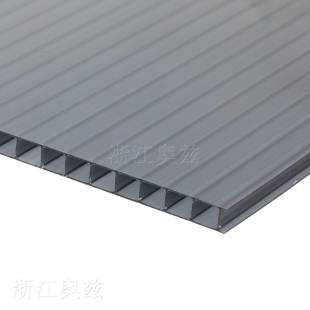 | 茶色阳光板 | 共挤添加茶色母粒,色彩均匀度高 | 70%-75% | 外观典雅,轻微过滤强光,避免眩光 | 小区景观棚、阳台雨棚、办公区隔断 |